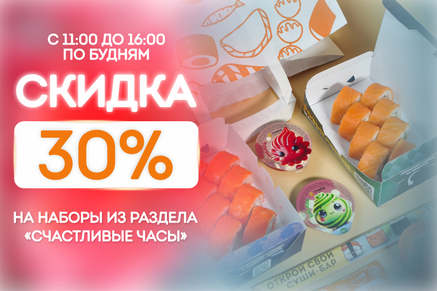 ***Заказы наборов по акции "Счастливые часы" принимаются в будние дни до 16:00. Выдача заказов по готовности.